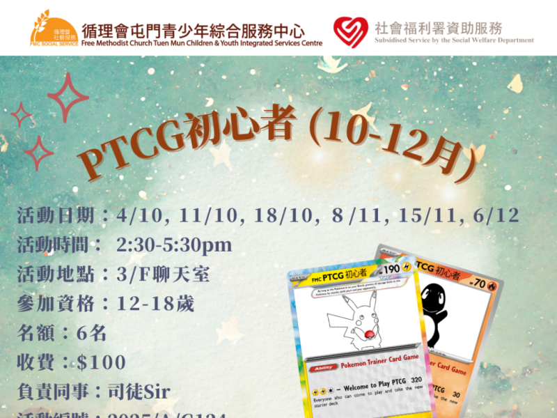 PTCG 初心者(10-12月)4/10 , 11/10, 18/10, 8/11, 15/11, 6/12