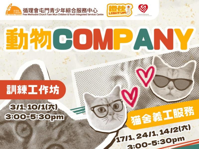動物Company工作坊:3/1, 10/1/2026(六) 3:00-5:30pm 義工服務:17/1/2026(六) 3:00-5:30pm, 24/1, 28/2/2026(六) 10:00am-12:30pm 成果分享會:6/3/2026(五) 7:00-9:00pm對象: 青少年