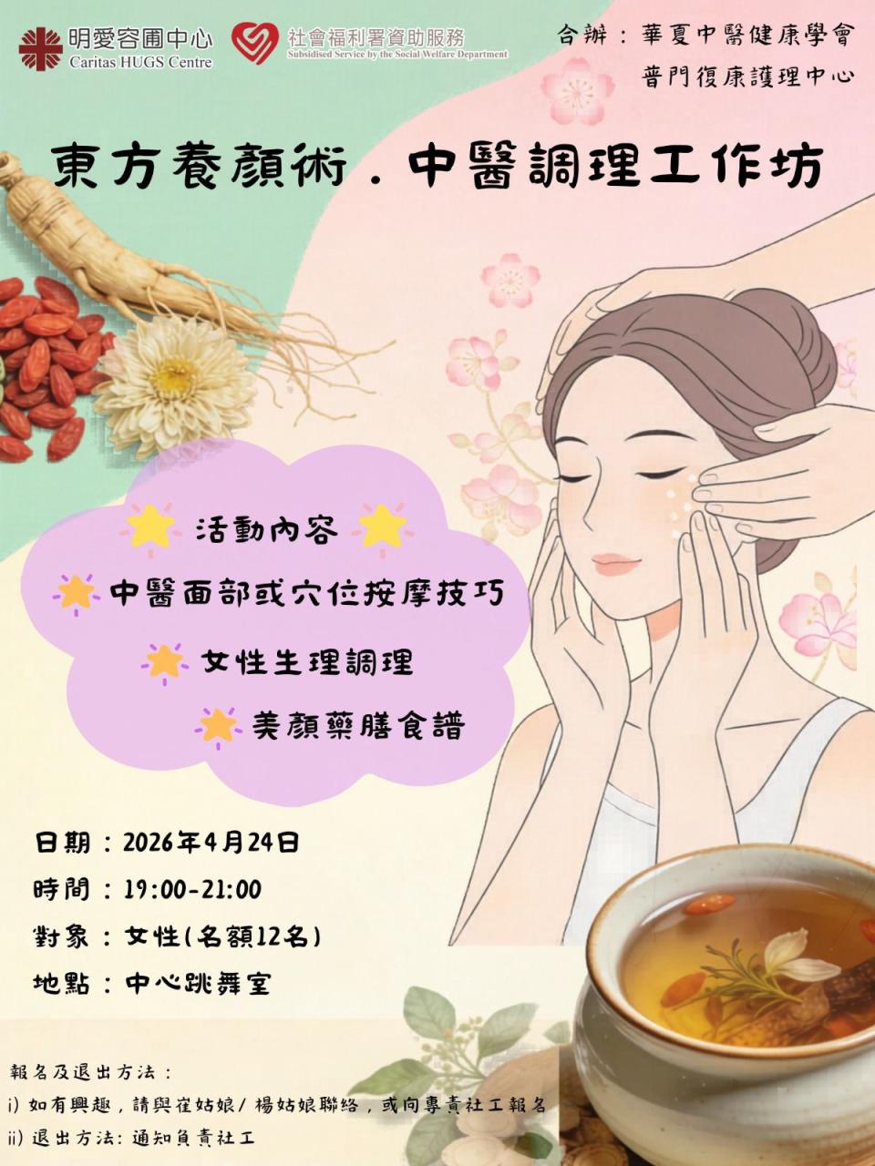 中醫面部或穴位按摩技巧、女性生理調理、美顏藥膳食譜