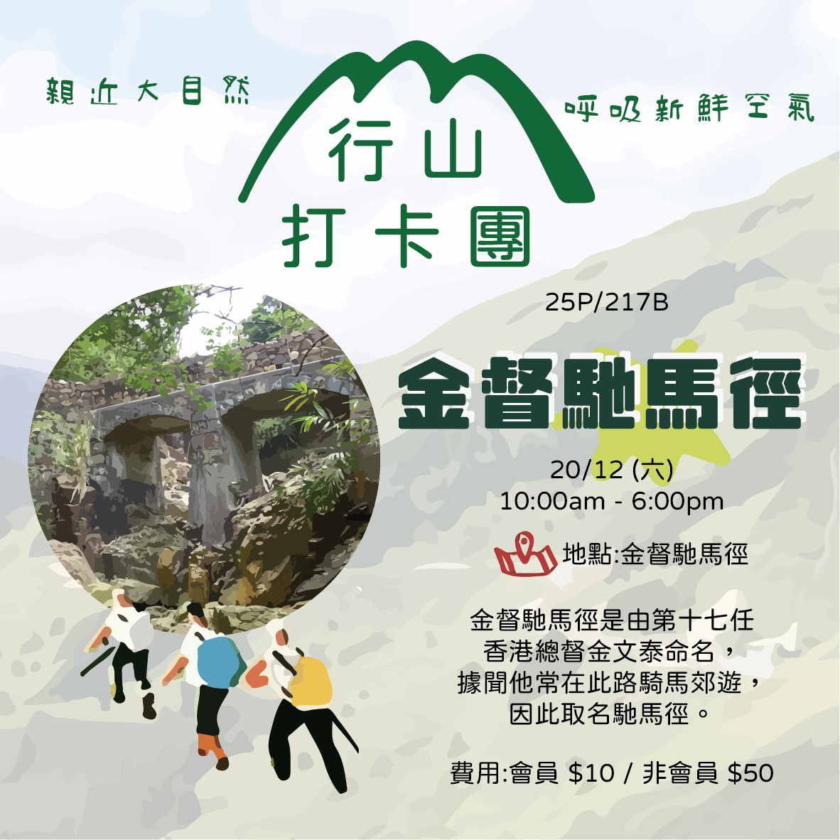 金督馳馬徑是由第十七任 香港總督金文泰命名, 據聞他常在此路騎馬郊遊, 因此取名馳馬徑。一齊行山,親近大自然,呼吸新鮮空氣。