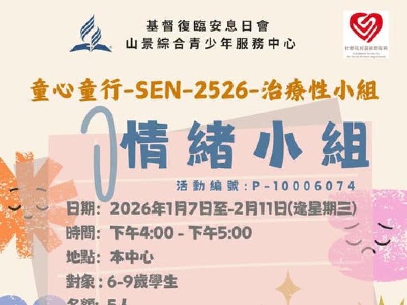 童心童行 - SEN治療性小組 - (情緒小組)7/1 - 11/2/2026 (三)對象: 兒童